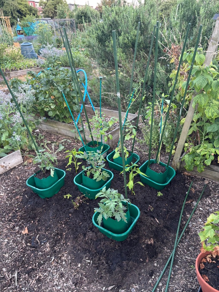 So I have friends who are even more uncontrollable in the face of a plant sale and went wild over the last couple of weeks and this is a long way of saying I was given some extra plants! I needed to accommodate them. Six tomato plants (appleberry red, yellow and orange, akoya) , three sweet peppers (Shadow and Lila purple), three padron peppers and two chillies (Santa Fe Grande). The padrons and the sweet peppers went into the polytunnel with the nine snack peppers already in there.