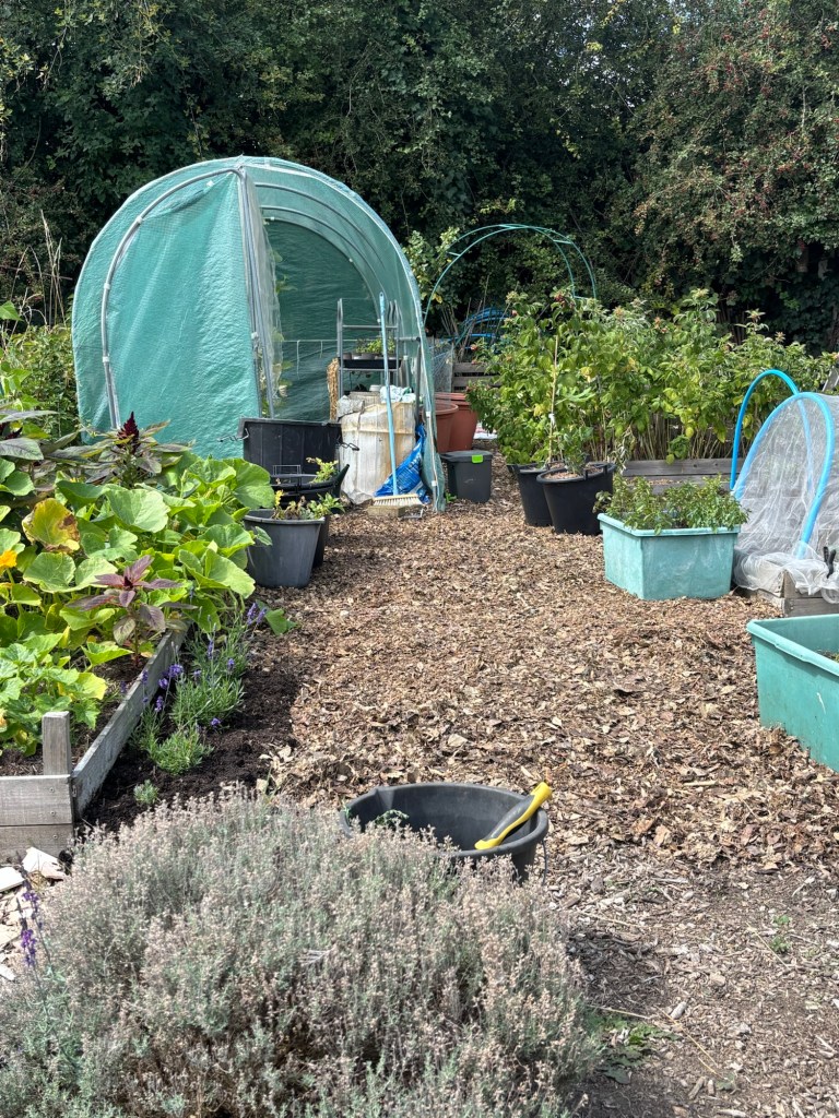 All of the plot is overgrown so I’m just doing was I can. Last week that was weeding at the back. I weeded, cardboarded and wood chipped the main path by the squash bed and around the raspberries and the bed next to it.