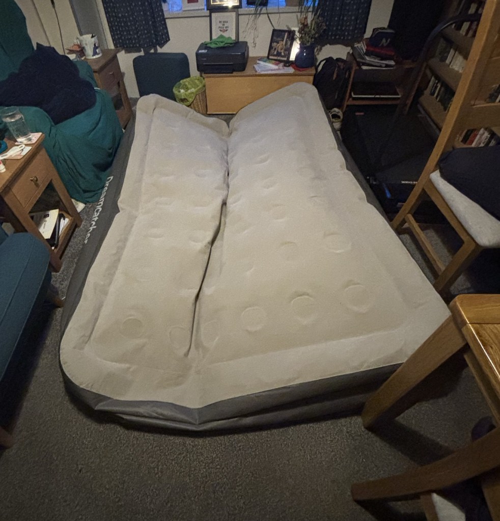 - At Mum’s I sleep in the living room on a airbed, it was what I slept on when my kitchen was being sorted in 2022 and it’s ok although putting it up and down every day is a hassle. This week, the airbed decided it had had enough and I woke up with my bum on the floor but with legs and head in the air and it felt like the airbed and the duvet when trying to eat me. After some discussion, we’re going to try something else for my sleep options..