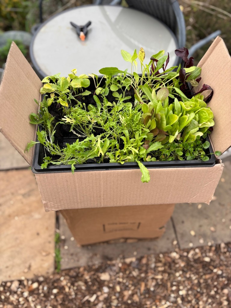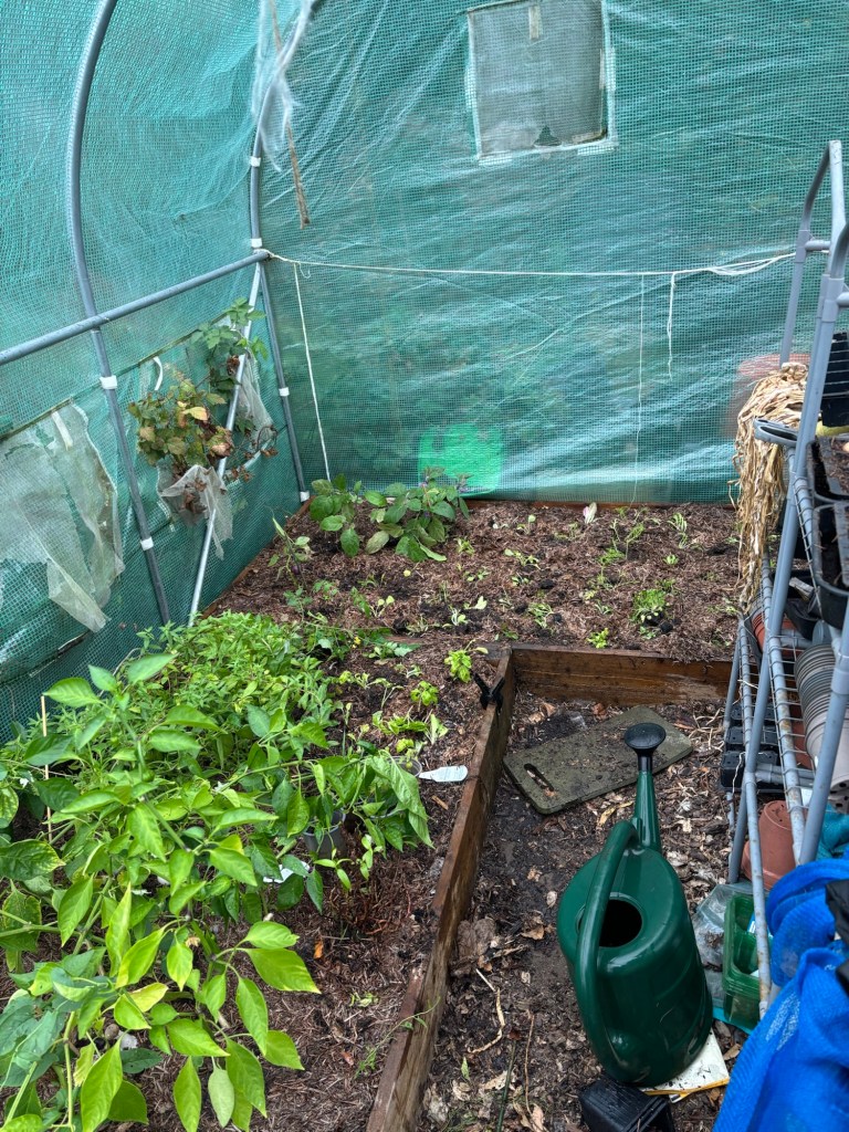 It was quick growing salad collection, some chard and lettuces, I had given Sue a collection for her small garden but there was quite a lot left. The salad mostly went into the polytunnel but the peppers aren’t ready to leave yet so it was a bit more crowded than I anticipated.