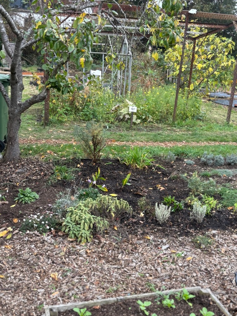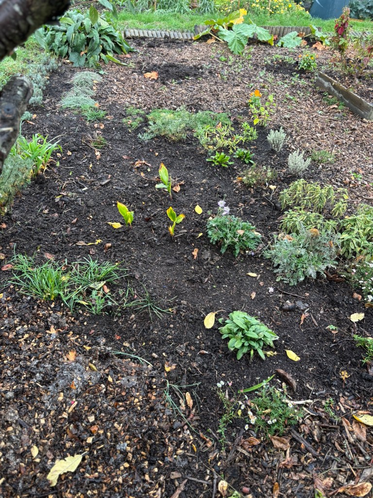 I got side tracked by the state of the front bed and the amount of plants that needed to go in the ground. So I weeded the front bed, I dug up one of the day lilies and moved the cola plant. In weeding I found a bunch of bulbs which I relocated to around the tree. I also mulched the area around the tree with woodchip and while I was thinking about it weeded the blackberries and mulched with woodchip.