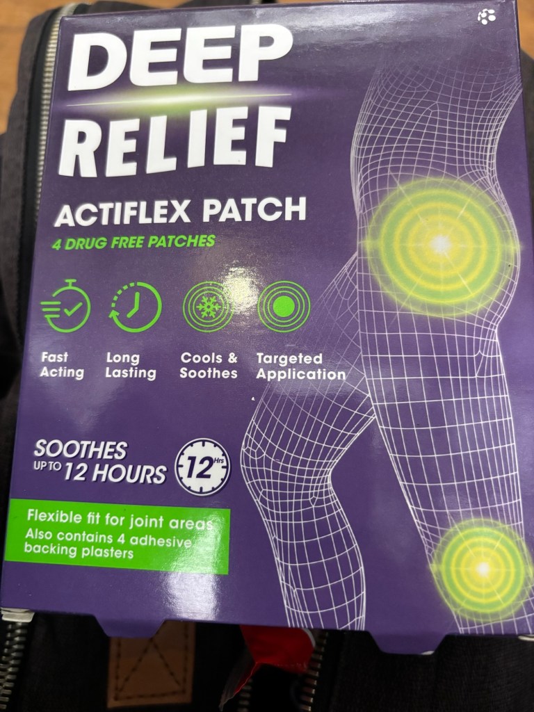 - It has not been a good health week. I had a flu jab on Tuesday, I’m having an ongoing issue with my GP about my HRT, and I banjaxed my back. Anything I managed to do from Thursday on is a testament power of over the counter co-codomol and Deep Relief patches and gel. I’m doing some exercises that should help in the long run but it’s been pretty ouchy