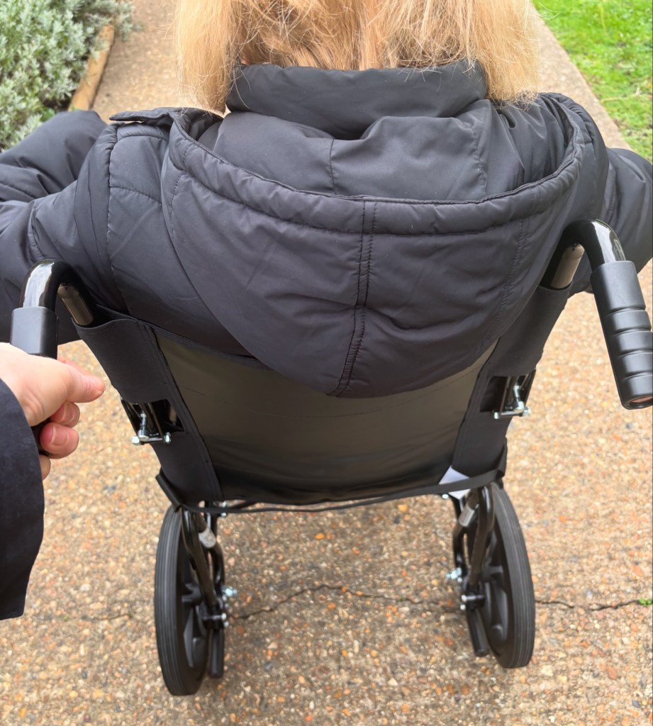 Mum’s wheelchair arrived! We’ve been out quite a bit and while Mum feels quite vulnerable in it (I think she can feel every bump in the road and having to put herself in my hands for ‘driving’). It has opened up what she and I can do! It gives me a walk and gets her a bit more engaged with the world. However, I put the picture below on social media and have been fielding questions about mum, PSP and whether they can come to visit. I’m not gatekeeping, I’m leaving it to mum and she is being extremely antisocial!
