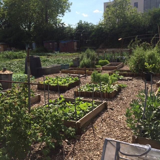 The nice thing about being weeding obsessed is that we can have a quiet weekend sometimes, it’s still in good shape. Yes my squash is behind, my cucamelons were eaten by slugs, I only have one cucumber plant alive and all my tomatoes are a bit weedy. But the sweetcorn came up, the squash are alive, the peas are flowering and there are pods, the raspberries are going mental and the salad and beetroot beds are looking fabulous. Also the californian poppies are everywhere, which I will show you next week when I’m on the plot and don’t feel ill.