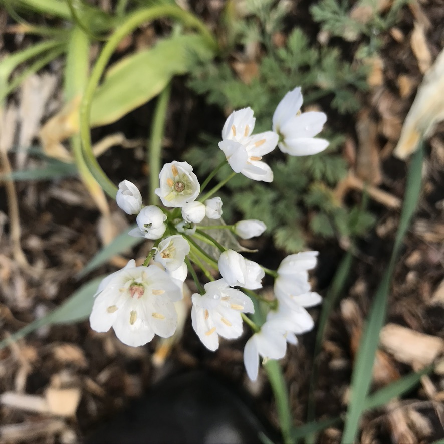 Last year we bought a bunch of bulbs and because the soil was so dry and hard to dig into, ended up throwing bulbs into the bed near the plum tree, we’ve designated that bed the bulb bed and we have narcissi, daffodils, crocuses and tulips in there. I think there are also irises in that bed that we are waiting on and this mystery (in that I can’t remember what it called) allium. I. moved some of the white tulips into this bed and I’ll also move the other tulips on the plot into the bed too. There is no planning in this bed either but I’m really fond of it’s chaos, especially as the californian poppies go mad in that bed!